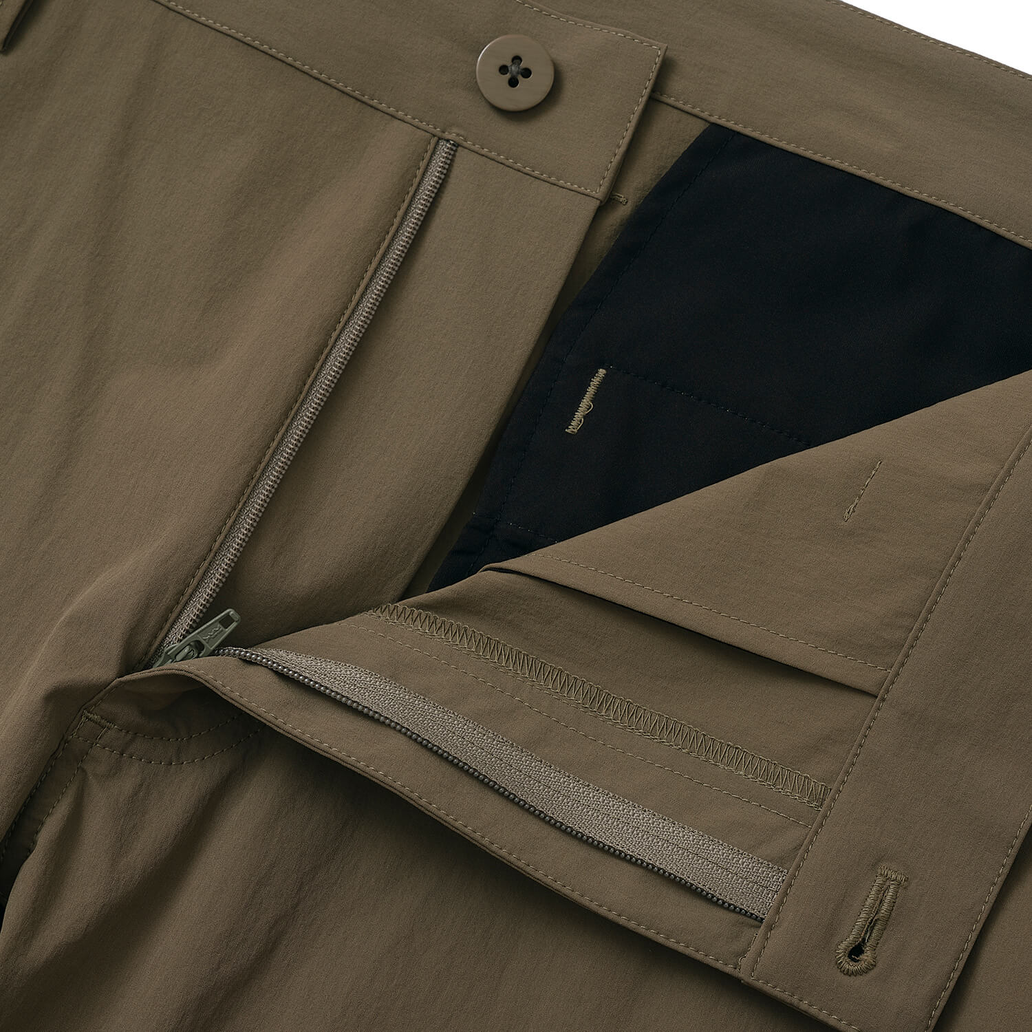 アースカラーを使用したナイロンパンツ。
