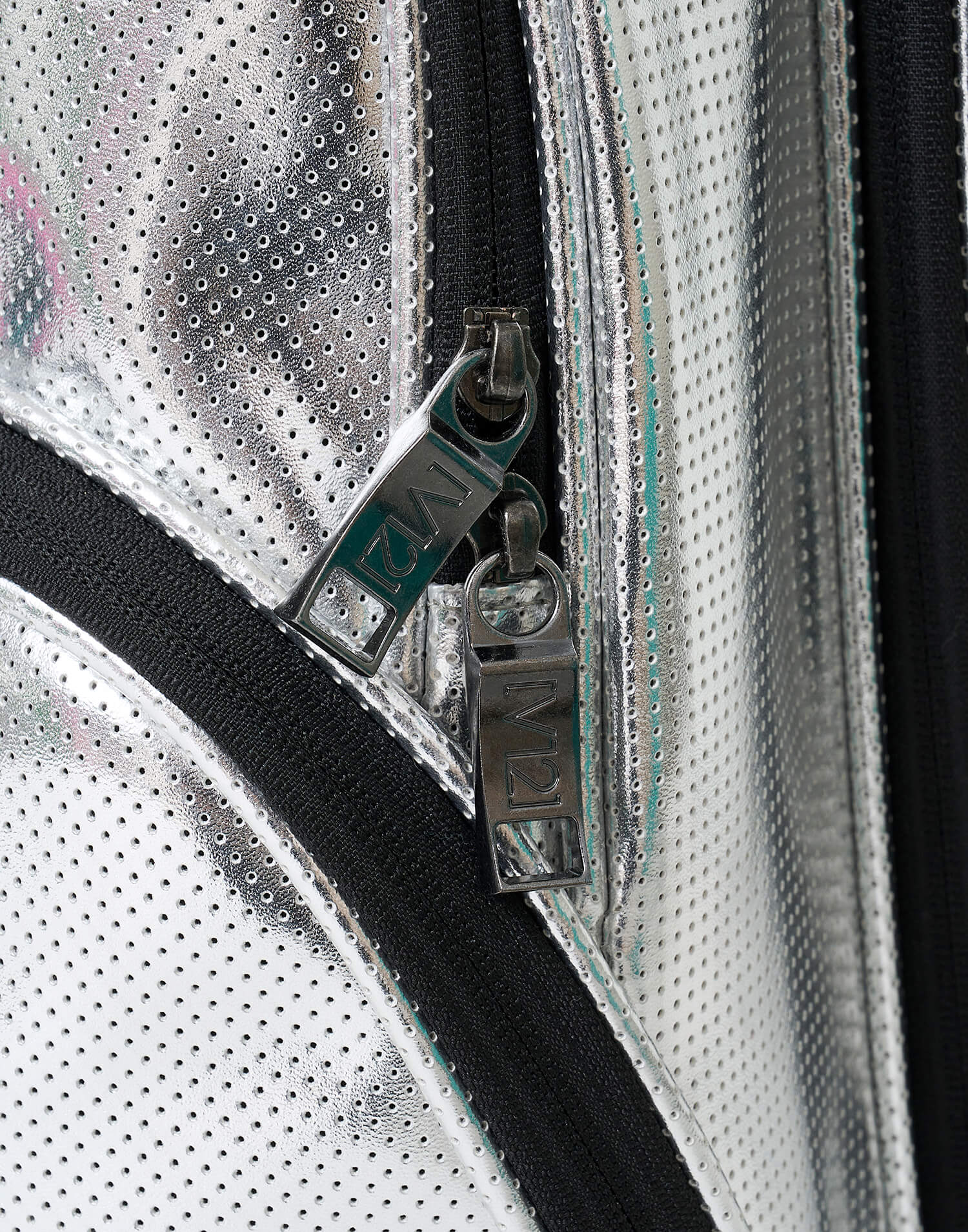 高級感のあるパンチングレザーにエナメルで施したロゴがラグジュアリーな印象。