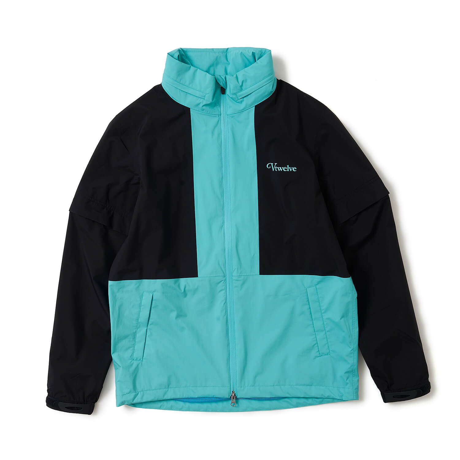 大胆なバイカラーが印象的なレインジャケット。