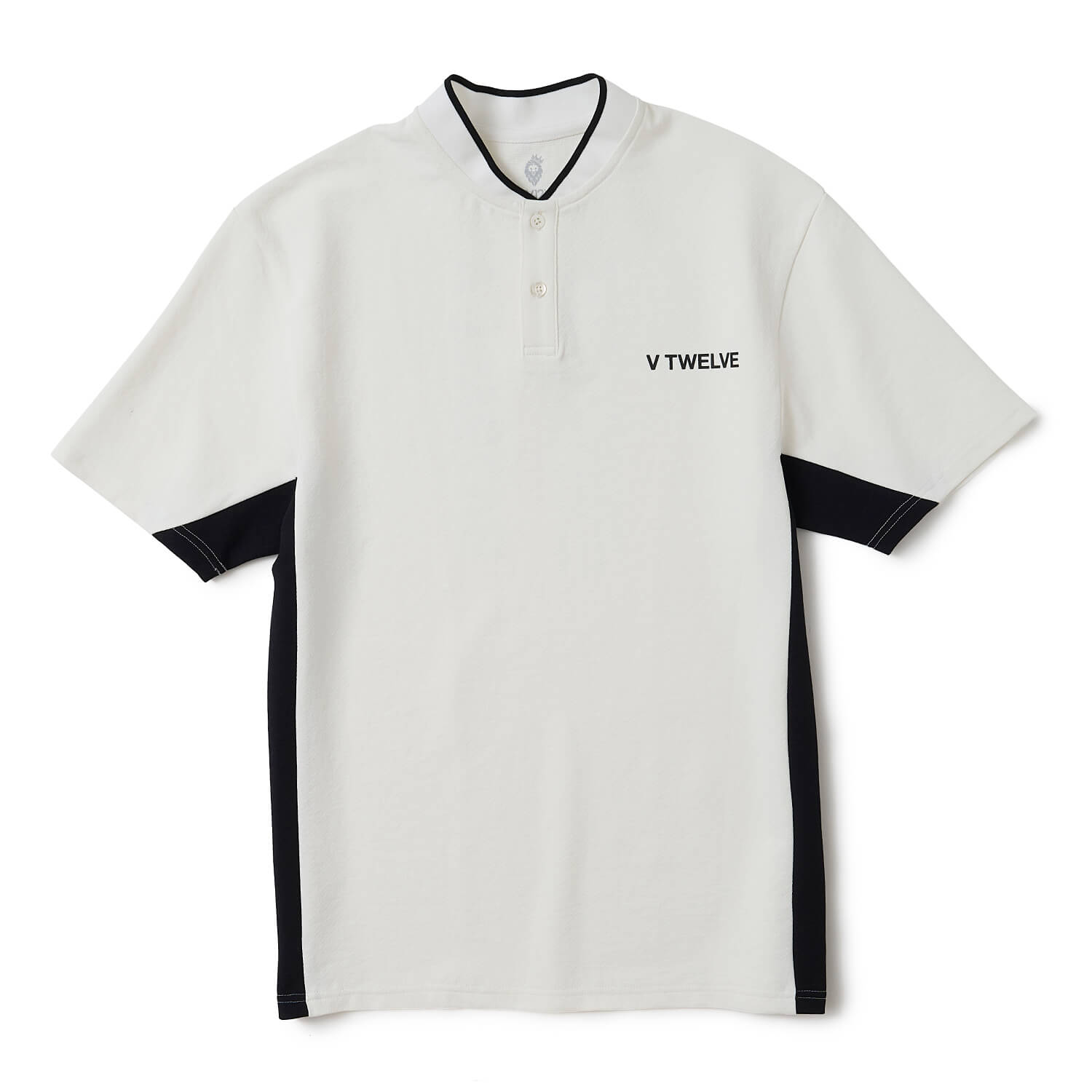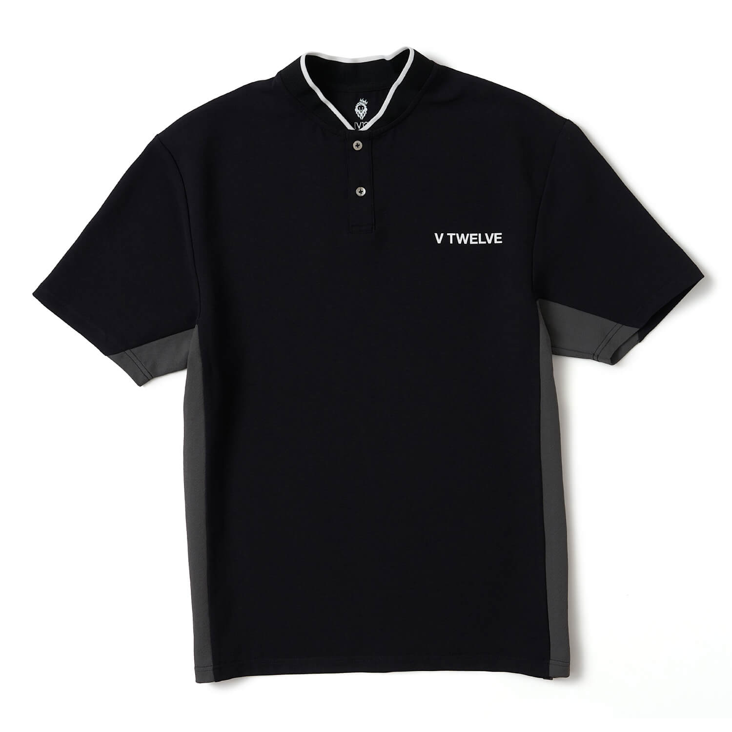 サイドの切り替えがアクティブな印象のヘンリーネックシャツ。